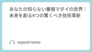 ― ミズアブ幼虫がマダイの持続可能性をどう変えるのか🌍 養殖業の「タンパク質危機」を救う救世主いま、世界中で人口が増え続...